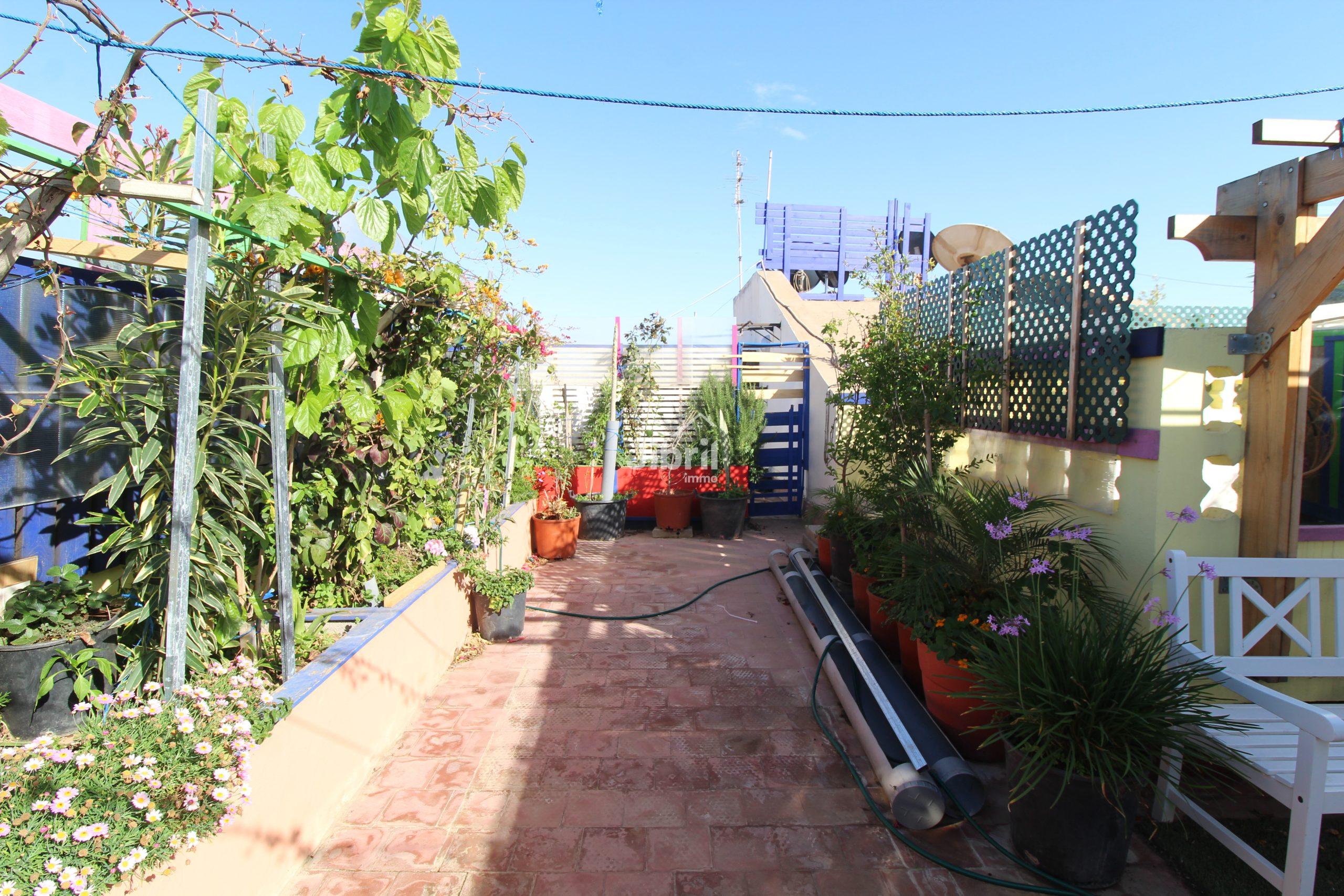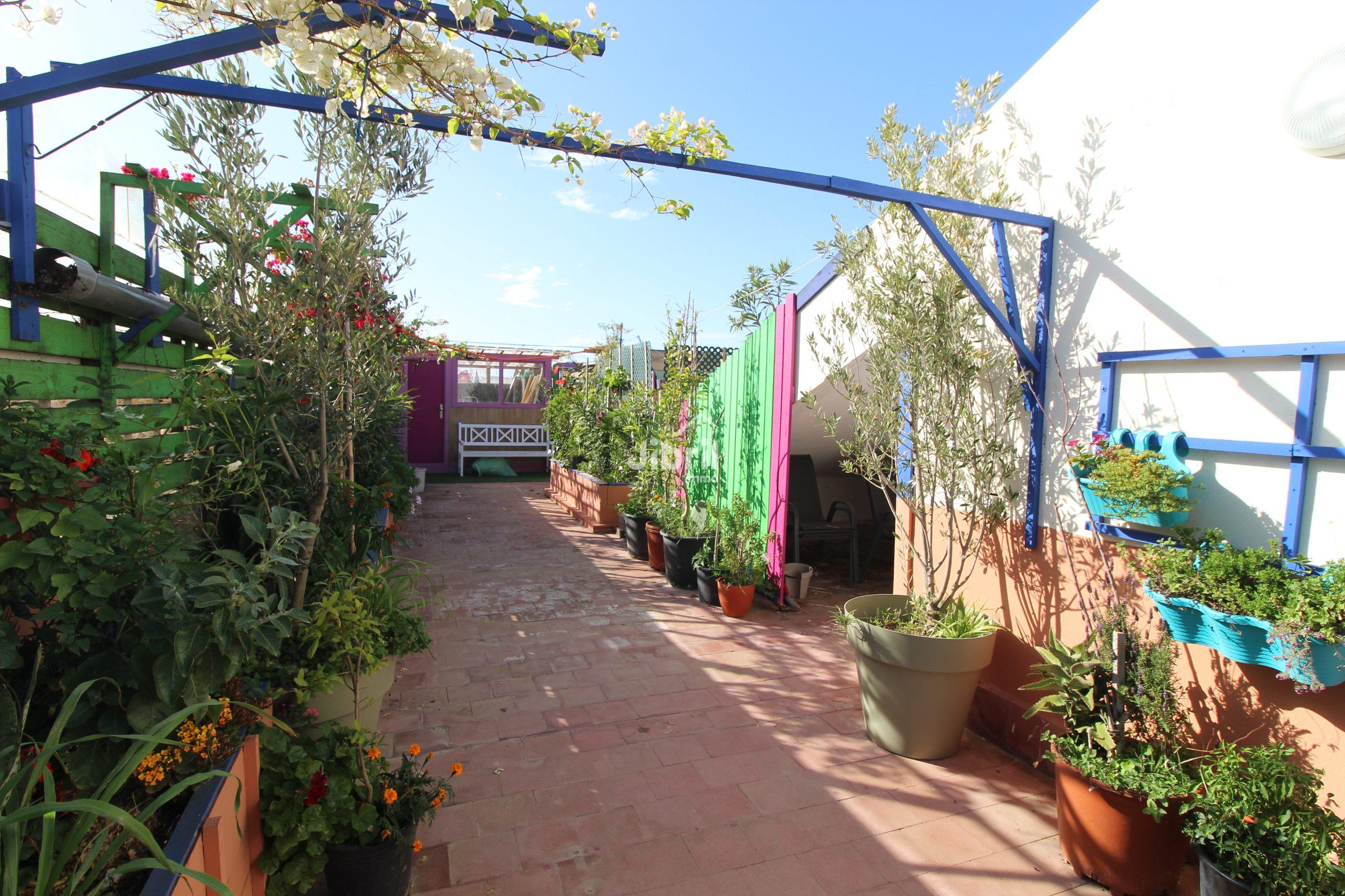Extérieurs : 2 petits balcons + toit-terrasse commun aménagé (plantes, jardin)
