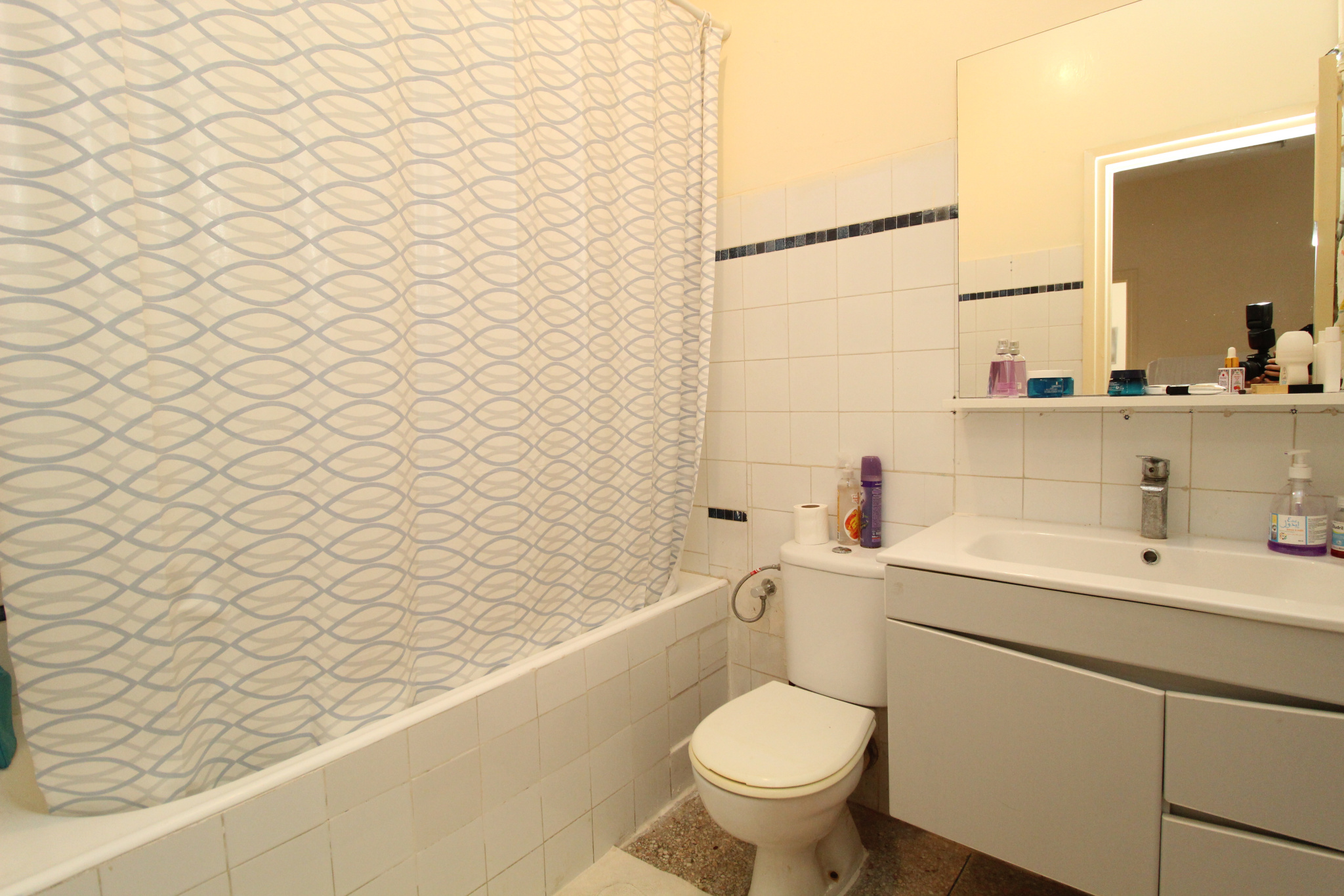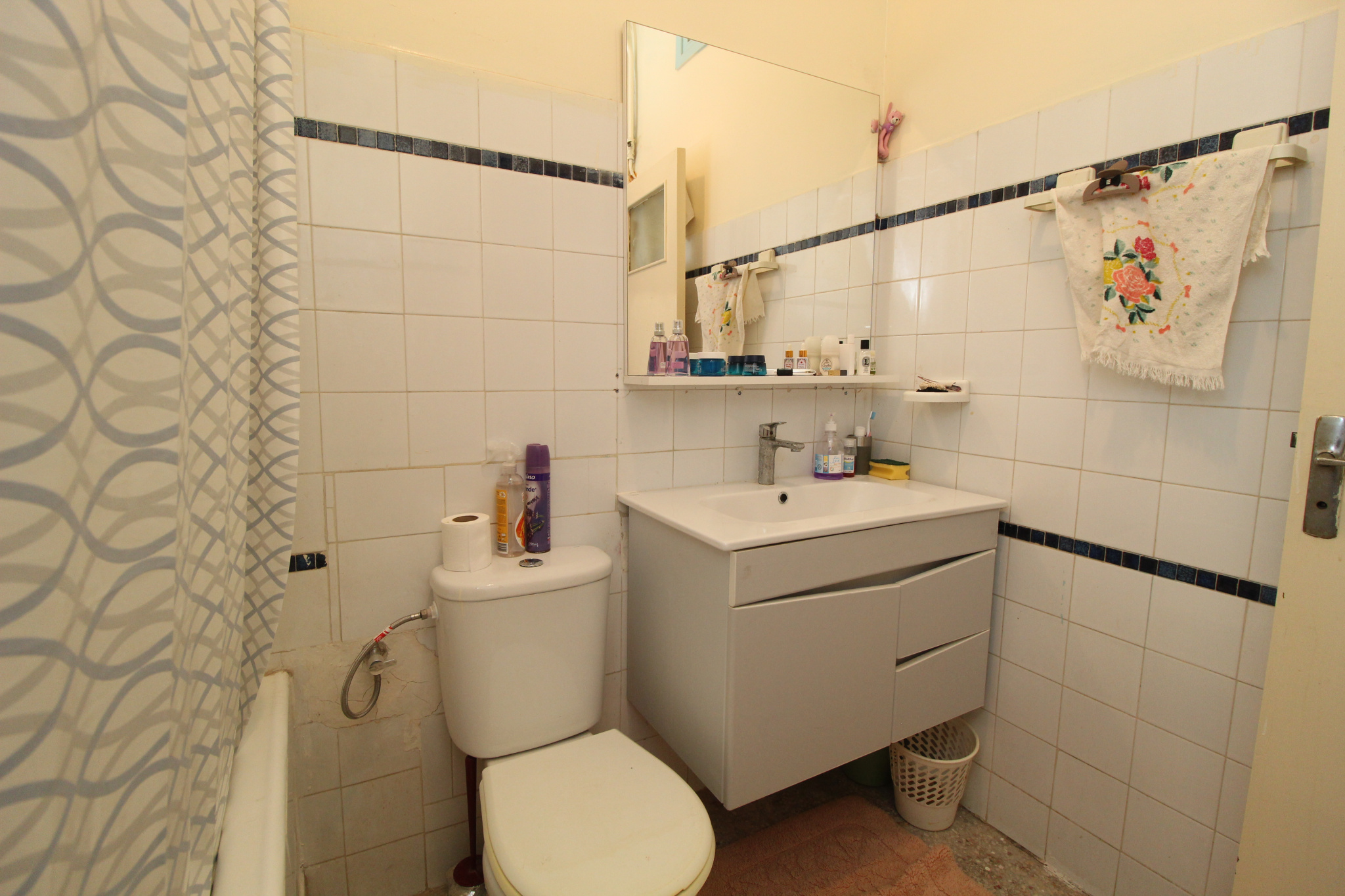 Sanitaires pratiques : une salle de bain avec WC et un toilette invité séparé.