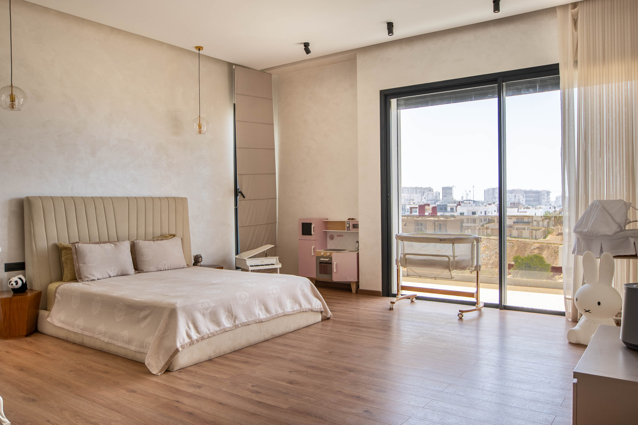 Chambres avec ameublement moderne et luxueux, et terrasses offrant une vue dégagée.