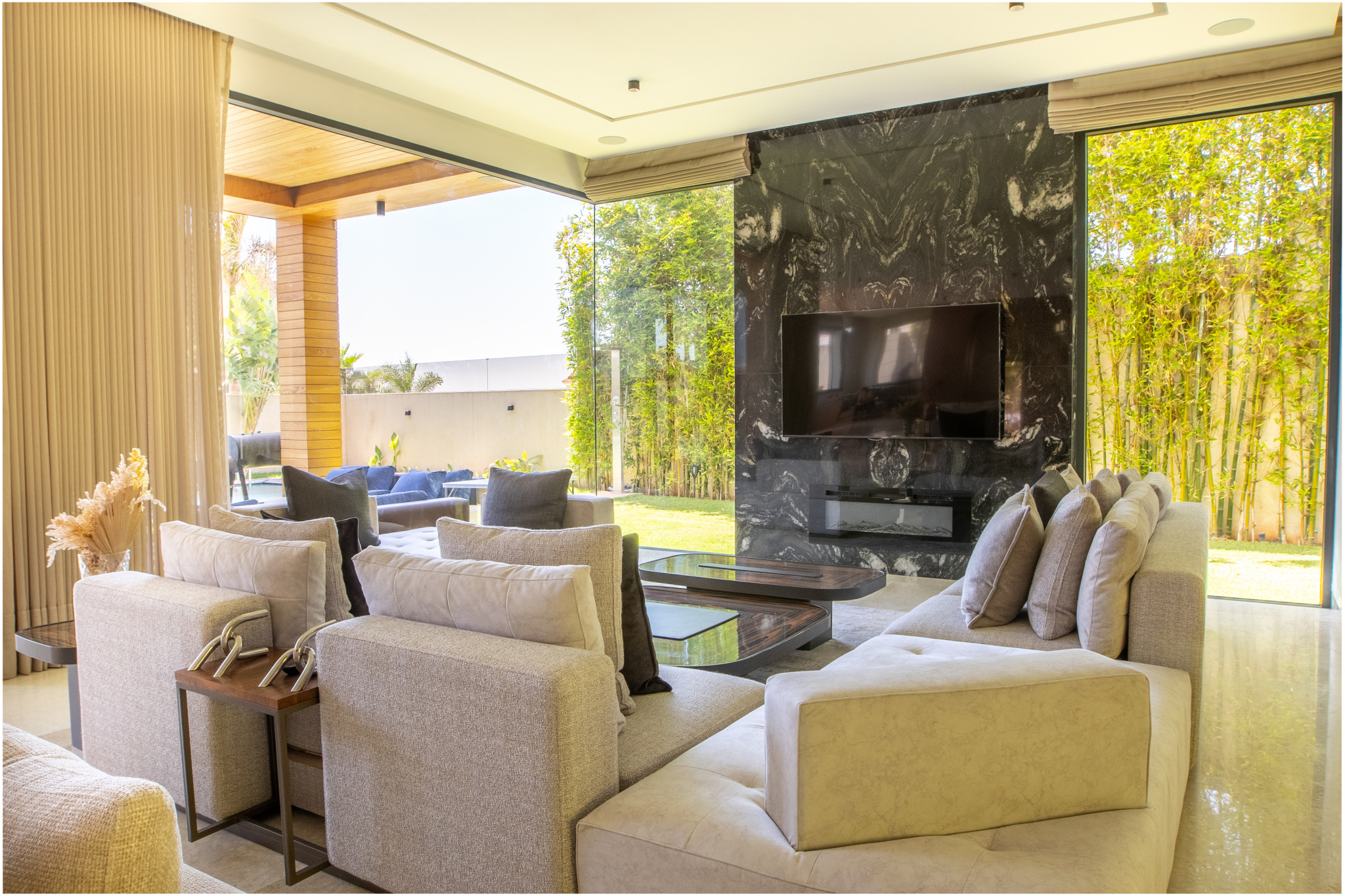 Salons avec mobilier italien de marques renommées comme Fendi et Minoti.