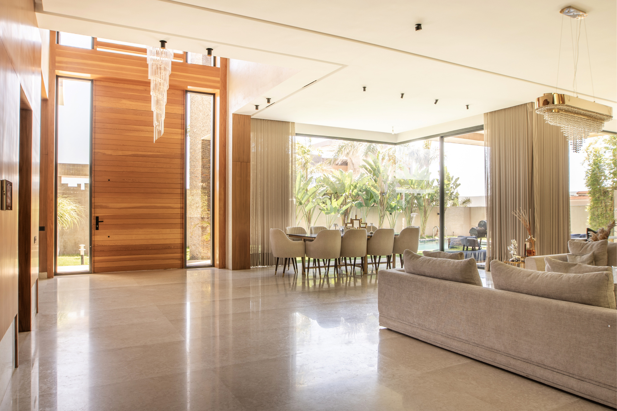 Cette villa à Agadir est une véritable œuvre d’art architecturale, imprégnée de modernité et de technologies de pointe. Dès l’entrée, le luxe se manifeste à travers les matériaux et les équipements haut de gamme. Les caractéristiques impressionnantes de cette propriété comprennent :