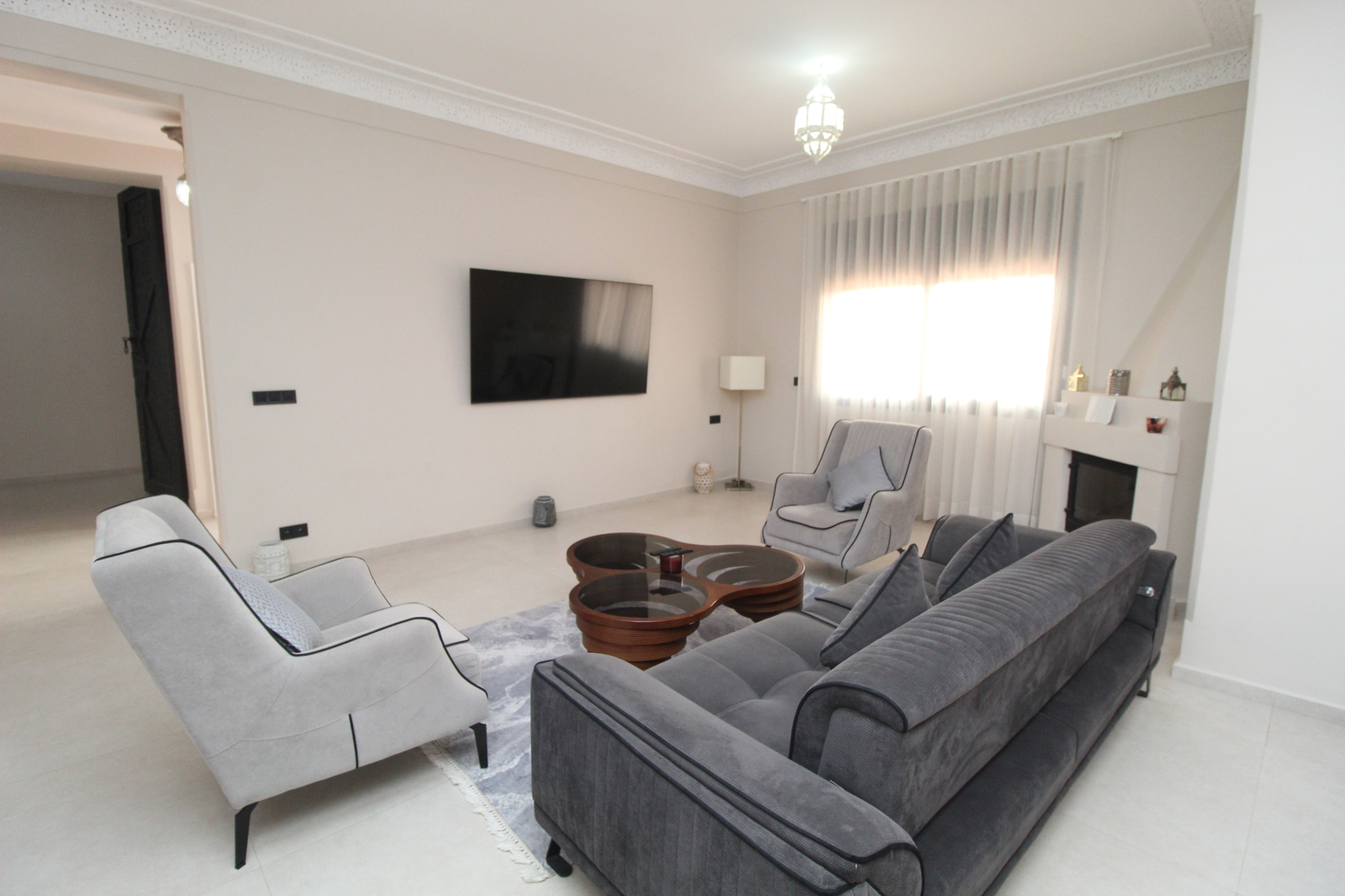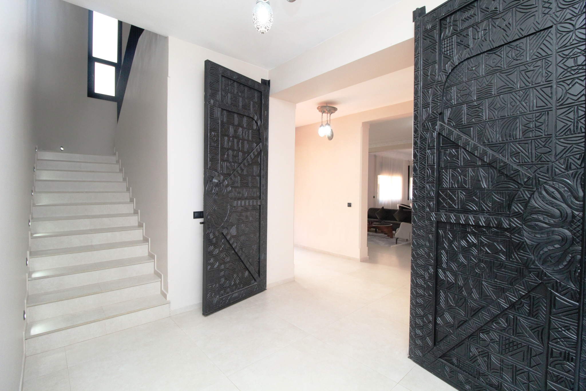 Dès l’entrée, vous êtes accueilli par une belle réception avec WC visiteurs, ouvrant sur des espaces de vie lumineux et parfaitement agencés.Le salon avec cheminée crée une atmosphère chaleureuse, complété par une salle à manger conviviale idéale pour recevoir.Le salon marocain avec billard apporte une touche d’authenticité et de loisir, parfaite pour vos moments de détente.